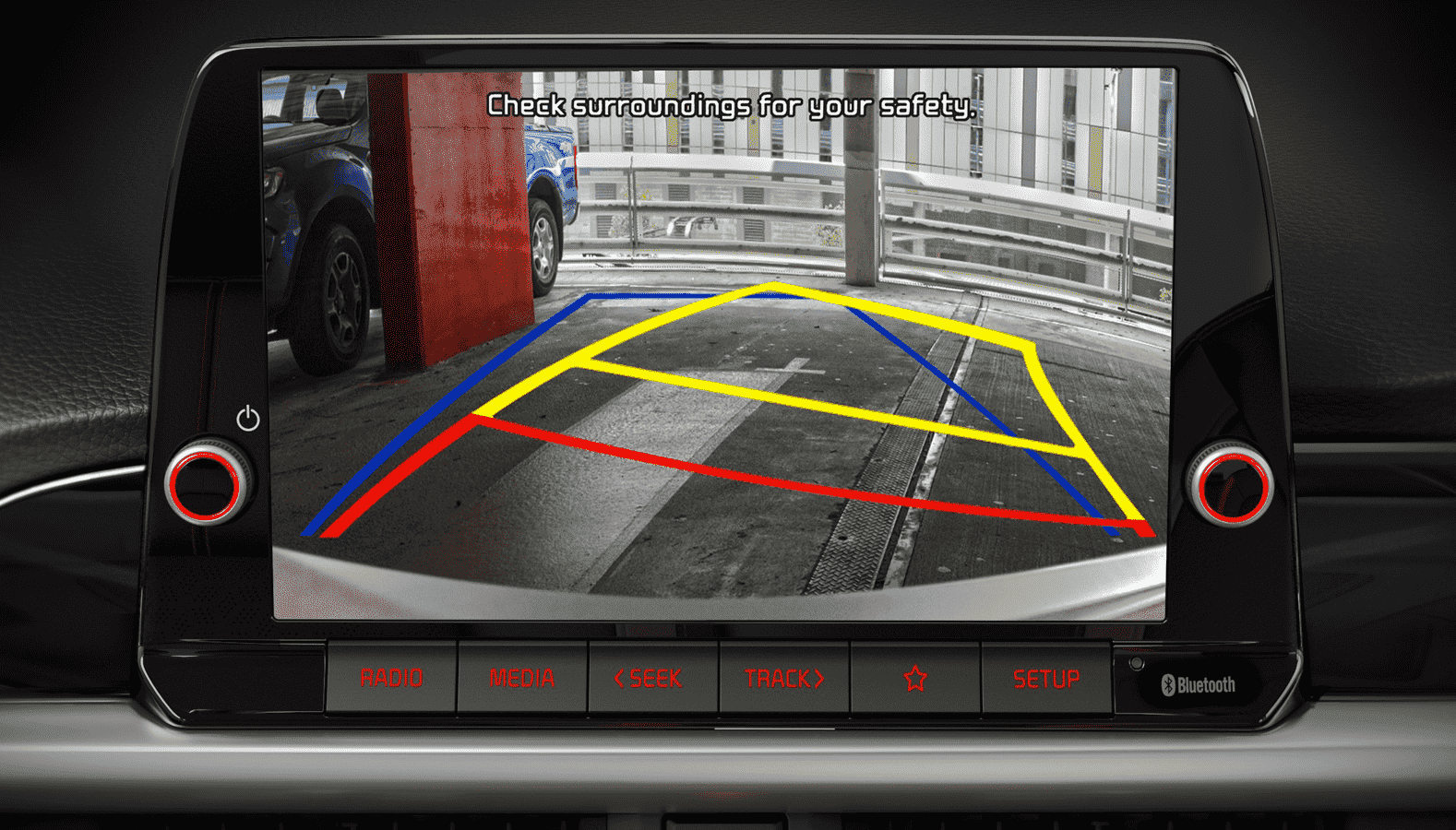 Màn hình hiển thị rõ nét, cảm biến hỗ trợ đỗ xe, phát cảnh báo bằng âm thanh khi xe có khả năng va chạm với chướng ngại vật theo đường lùi xe.