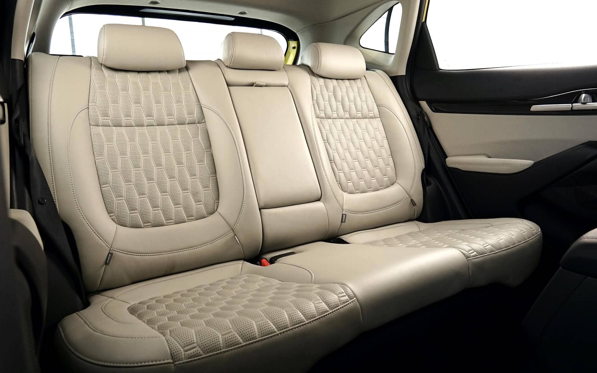 Trang bị ghế và nội thất bọc da mềm mại với nhiều màu sắc, họa tiết sắc nét tạo nên không gian nội thất sang trọng và thoải mái cho người dùng.